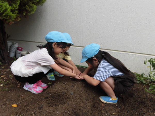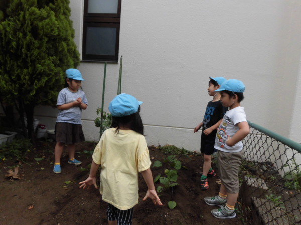 今日は園庭に野菜の苗を植えました。