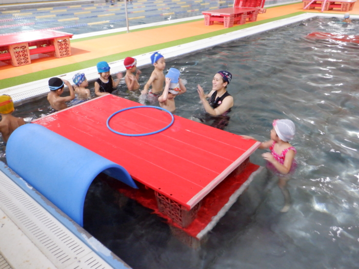 今日は、秋田アスレティッククラブのプール教室に行ってきました。久しぶりのプール教室に、子どもたちは数日前から楽しみにしていました。夏場の、園での水遊び経験もあって、すっかり水とお友だち‼あっという間に時間が過ぎてしまうくらい楽しんでいた子どもたちでした。