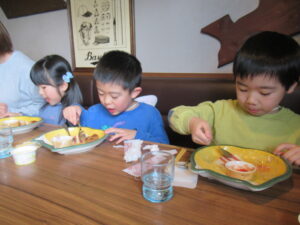 今日は、ぞう組さんがお別れ遠足に行きました。みんなで一緒にドラえもんの映画をみて、美味しいハンバーグを食べて、大満足の子どもたち!とっても特別な一日になりました。