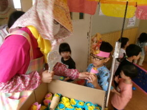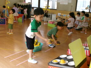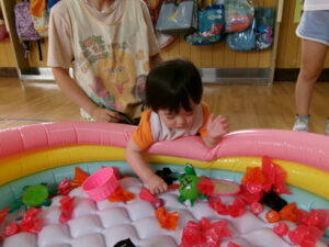 夏祭り2日目♪今日もそれぞれのコーナーが盛り上がりました!ババヘラには青色の限定バージョンも登場し、どちらにしようか迷っていた子どもたちです🍧