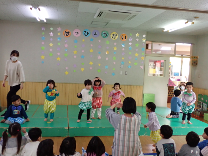今日は1回目の発表会の予行練習がありました。始まる前はいろいろな先生、お友達のお客さんにドキドキの様子でしたが、たくさんの拍手や声援をもらい、頑張ってステージに立っていましたよ✨