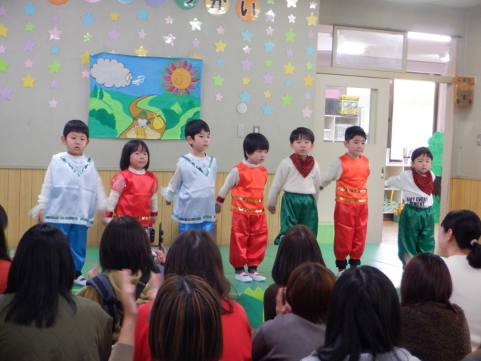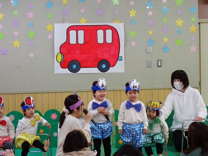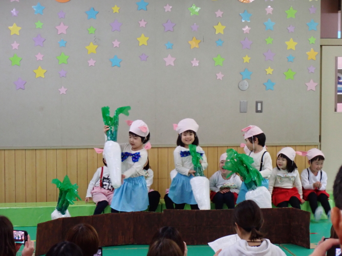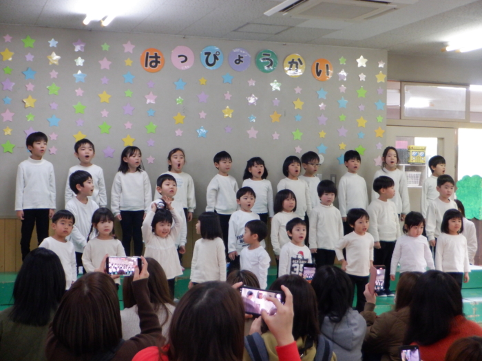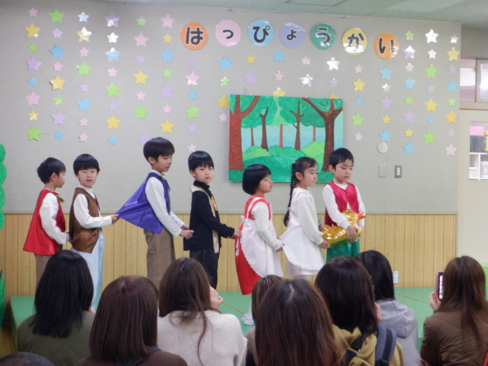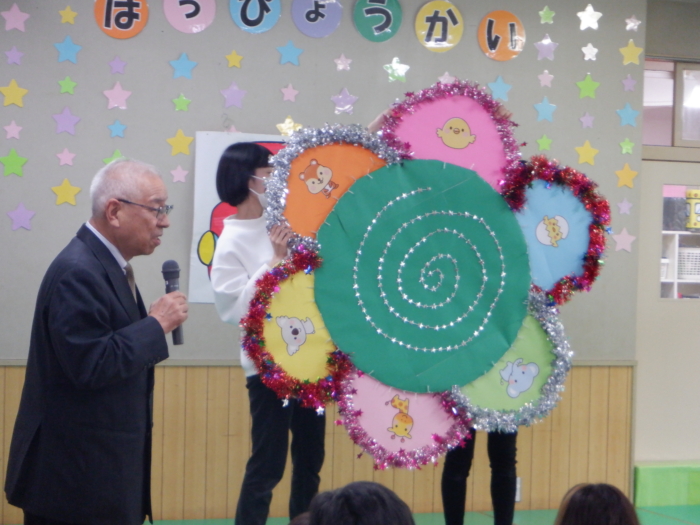 12月6日(土)に、保育園のホールでお楽しみ発表会がありました。ドキドキしながらも大好きなお家の人たちの前に立ち、発表を楽しんでいた子どもたちです。発表の最後には、園長先生から大きな花丸をもらいました。みんながんばったね!!
