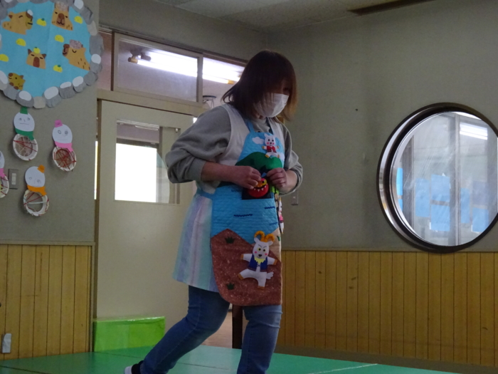 今日は大きいクラスの誕生会がありました!お友だちや、おうちの人の前でちょっぴり緊張した様子もありましたが、インタビューにはきはきと答えていましたよ☆先生からのお楽しみプレゼントは「3匹のヤギとがらがらどん」のエプロンシアター!がらがらどんが登場する度に子どもたちからは歓声があがっていました!