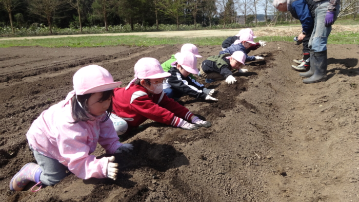 御山野楽校へじゃがいも植えに行ってきました(ぞう組)