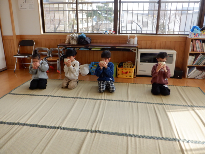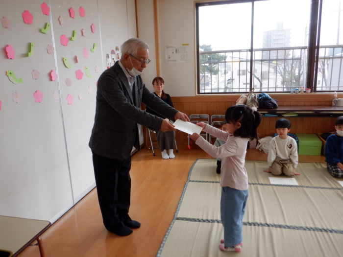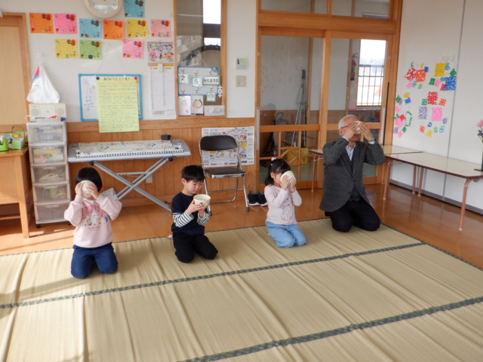 今日の茶道教室では、子どもたちが一年間頑張って参加してきたことを記念して、“おしるし”(賞状)をいただきました。