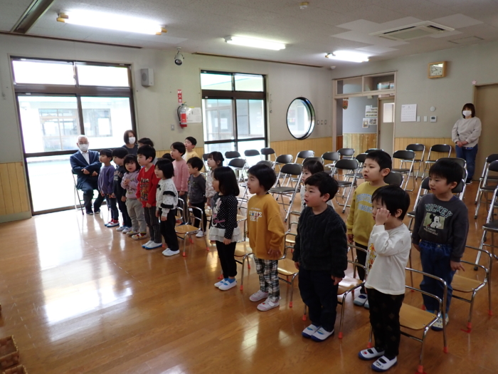 今日は卒園式の1回目の予行練習をし、ぞう、きりん、こあら組が参加しました。いよいよ式が近づいてきて子どもたちの表情も凛々しく見えました🌸