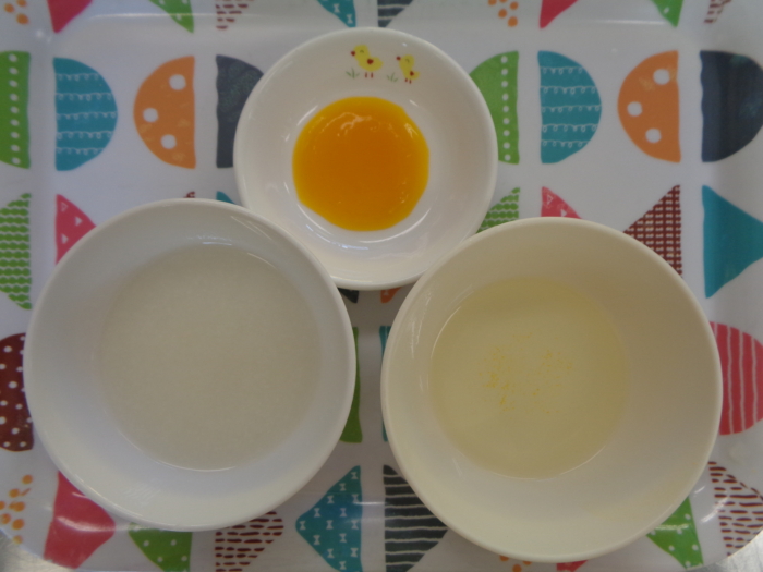 今日の給食は、ごはん、肉豆腐、ツナサラダ、ほうれん草の味噌汁です。離乳食(初期)は、つぶし粥、南瓜ペースト、野菜スープです。