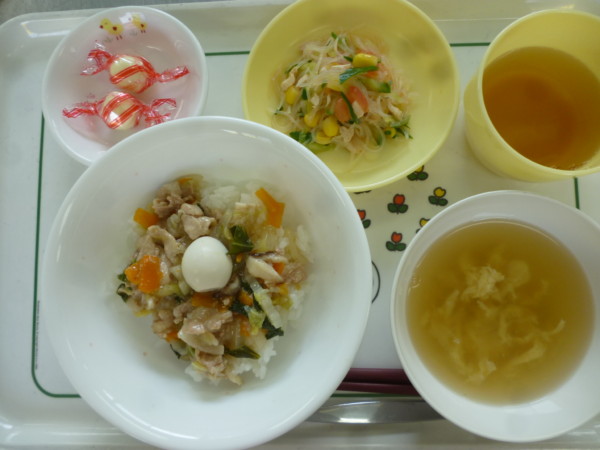 今日の献立は、中華丼、春雨サラダ、卵スープ、チーズキャンディです。アレルギー食(卵)はうずら卵、卵を除いていま … “中華丼” の続きを読む