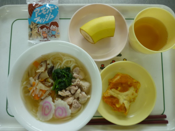今日の献立は、鶏塩うどん、かぼちゃのチーズ焼き、バナナ、小魚アーモンドです。アレルギー食(乳)はチーズ、スキム … “鶏塩うどん” の続きを読む