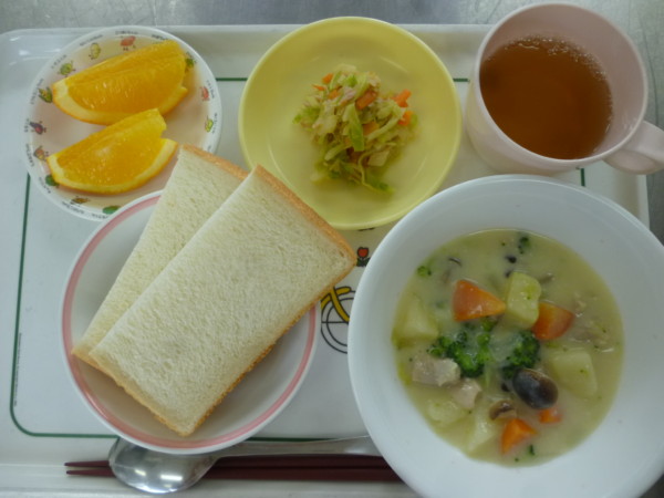 今日の給食は、クリームシチュー、食パン、キャベツのサラダ、オレンジです。アレルギー除去食(乳)は、ポトフです。 … “クリームシチュー” の続きを読む