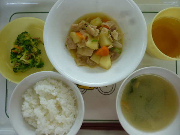 今日の給食はご飯、肉じゃが、ブロッコリーの和え物、お麩とワカメのみそ汁です。離乳食(中期)は7分粥、さつま芋、 … “肉じゃが” の続きを読む