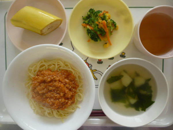 今日の給食はミートソーススパゲティ、ブロッコリーのサラダ、じゃが芋のスープ、バナナです。離乳食(中期)は7分粥 … “ミートソーススパゲティ” の続きを読む