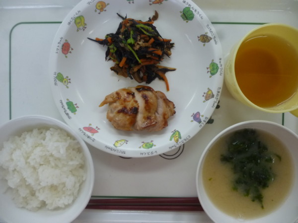 今日の給食はご飯、鶏のごまやき、ひじきの炒り煮、あおさのみそ汁です。離乳食(中期)は5部粥、豆腐、人参ペースト … “鶏のごまやき” の続きを読む