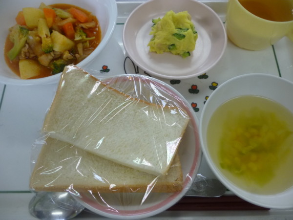 今日の給食は食パン、鶏肉と野菜のトマト煮、さつま芋サラダ、キャベツスープです。アレルギー食(卵)はマヨネーズ除 … “鶏肉と野菜のトマト煮” の続きを読む