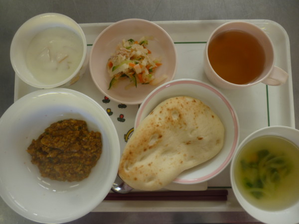 今日の給食はキーマカレー、ナン(未満児はキーマカレーライス)、大根のツナサラダ、コーンスープ、桃ヨーグルトです … “キーマカレー” の続きを読む
