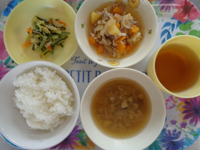 今日の給食は、ごはん、肉じゃが、きゅうりの中華和え、きのこの味噌汁です。 離乳食(後期)は、全粥、ベビー肉じゃ … “肉じゃが” の続きを読む