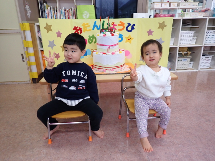 今日は、未満児クラスのお友だちの誕生会がありました。お誕生日のお友だちは一人でしたが、みんなにお祝いされニコニ … “1月生まれの誕生会がありました(未満児クラス)” の続きを読む