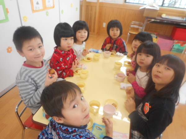 今日は一緒におやつを食べました。