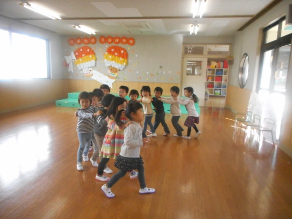 今日はホールや園庭で遊びました。