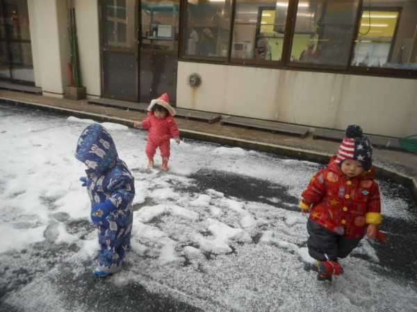 今日は園庭で雪遊びをしました。