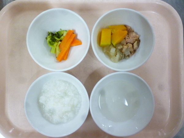 今日の離乳食は全粥 うわずみ 煮魚(鮭 かぼちゃ 大根) スティック野菜(人参 ブロッコリー)です。