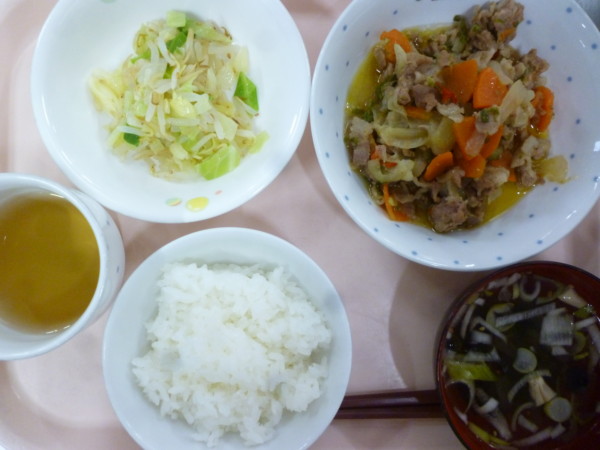 今日の給食は ごはん プルコギ もやしのナムル わかめスープ です。