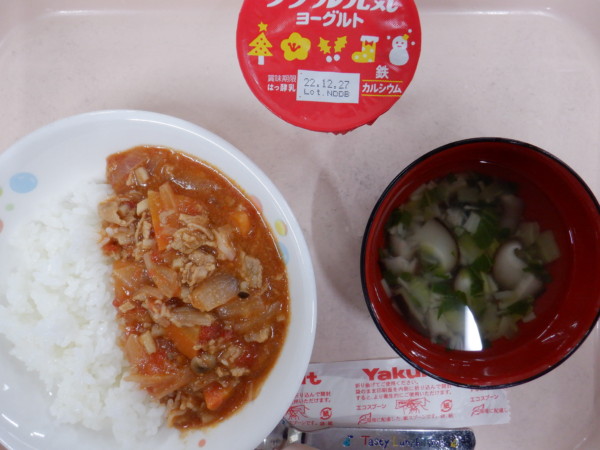 今日の給食は、ハッシュドポーク ヨーグルト きのこスープ です。離乳食は、全粥 うわずみ しらすと野菜の煮物(しらす 人参 じゃがいも 小松菜) ステック野菜(大根 さつま芋) です。