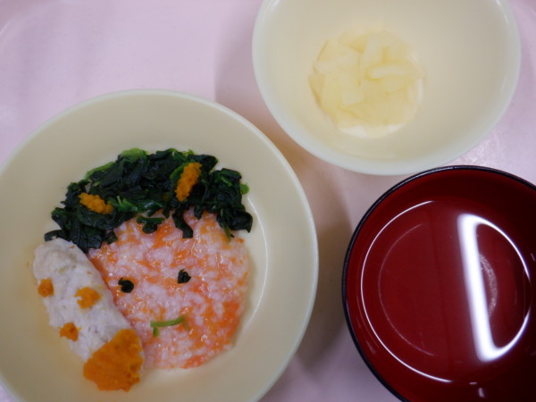 今日の給食は、 節分プレート(人参ごはん、焼きそば、金棒バーグ、とんがりコーン) 野菜スープ フルーツ(りんご) です。離乳食は、 おにの顔プレート【人参ごはん(全粥、人参) 髪の毛(ほうれん草) 金棒バーグ(鶏ひき肉、玉ねぎ) つの(かぼちゃ)】 うわずみ フルーツ(りんご) です。
