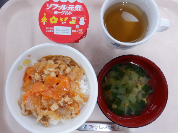 今日の給食は、 鶏肉のケチャップ丼 チンゲン菜のスープ ヨーグルト です。