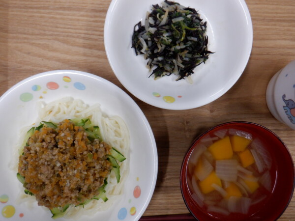 今日の給食は、 ジャージャー麺 中華サラダ 野菜スープ です。