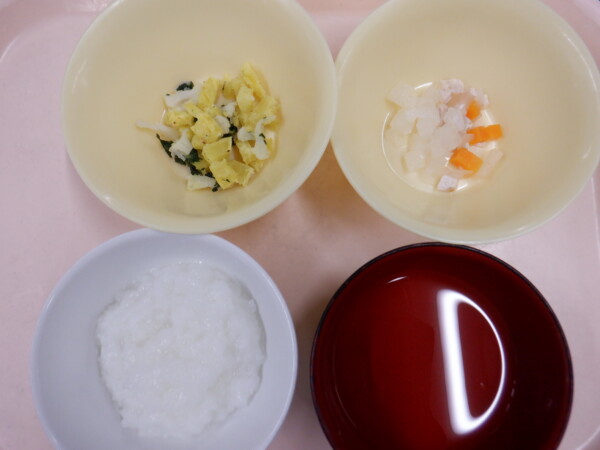 離乳食は、 全粥 うわずみ 鶏肉のポトフ風(鶏肉、玉ねぎ、人参、大根) カリフラワーのサラダ(カリフラワー、ほうれん草、さつまいも) です。