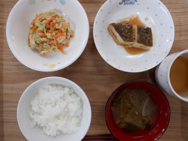 今日の給食は、 ごはん カレイのみそ煮 納豆和え すまし汁 です。