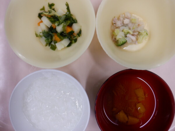 離乳食は、 全粥 うわずみ(かぼちゃ) 鶏肉とブロッコリーのソテー(鶏肉、ブロッコリー、玉ねぎ) ポテトのスープ煮(じゃが芋、人参、白菜) です。