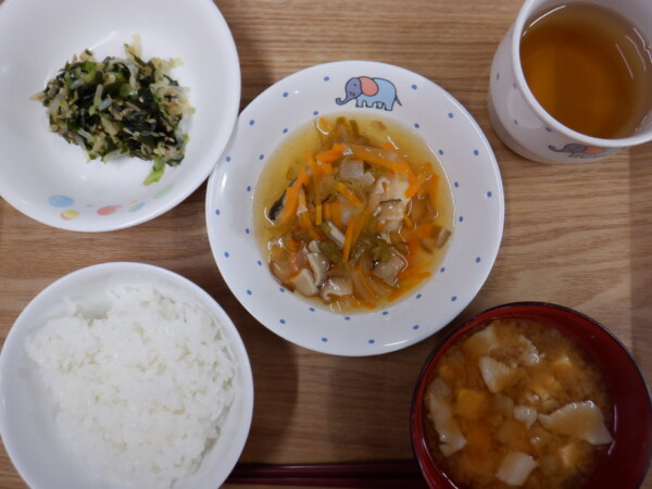 今日の給食は、 ごはん ホキの甘酢あんかけ もやしナムル 豆腐のみそ汁 です。