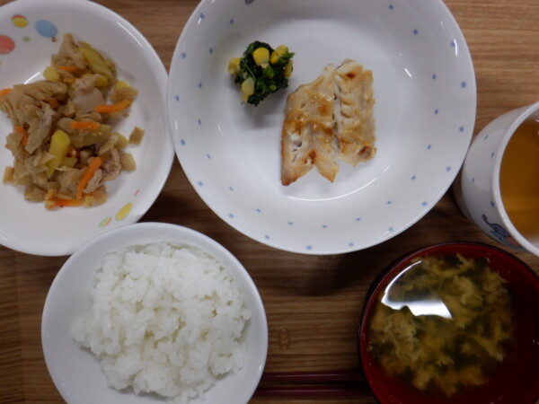 今日の給食は、 ごはん 赤魚のみそマヨ焼き きんぴらごぼう わかめと卵のすまし汁 です。