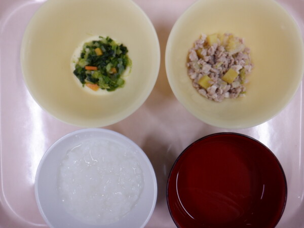 離乳食は、 全粥 うわずみ 鶏肉の醤油煮(鶏肉、さつま芋、白菜) キャベツの和え物(キャベツ、人参、ほうれん草) です。