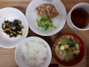 今日の給食は、チキンカレー シーザーサラダ コンソメスープ です。