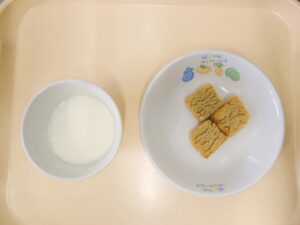午後おやつ:きなこクッキー、牛乳