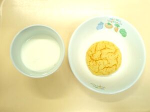 午後おやつ:かぼちゃ蒸しパン、牛乳