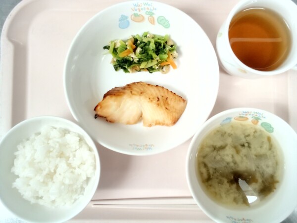 ごはん、味噌汁、魚の香味焼き、ほうれんそうのきつね和え・・・280kcal