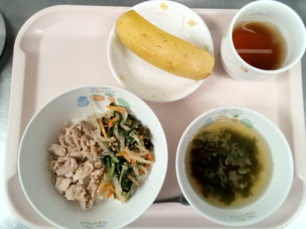 ビビンバ丼、わかめスープ、バナナ・・・351kcal