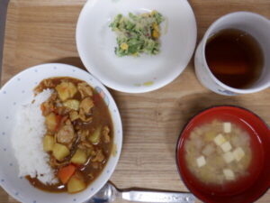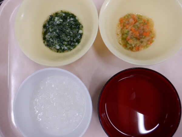 離乳食は、 七倍粥 うわずみ タラの煮付け(タラ、たまねぎ、こまつな) 花野菜サラダ(白菜、大根、人参) です。