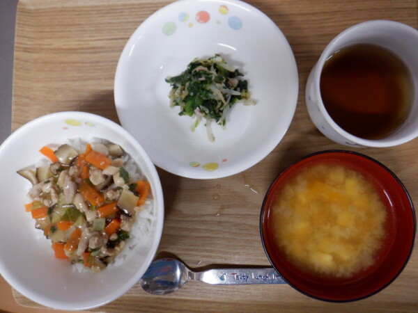 今日の給食は、 鶏あんかけ丼 中華ナムル みそ汁 です。